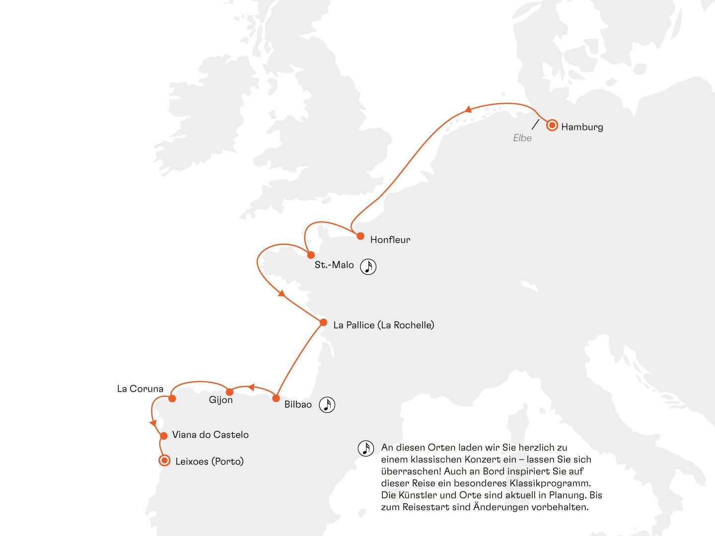 Route: Hamburg - Honfleur / Frankreich - St. Malo / Frankreich -